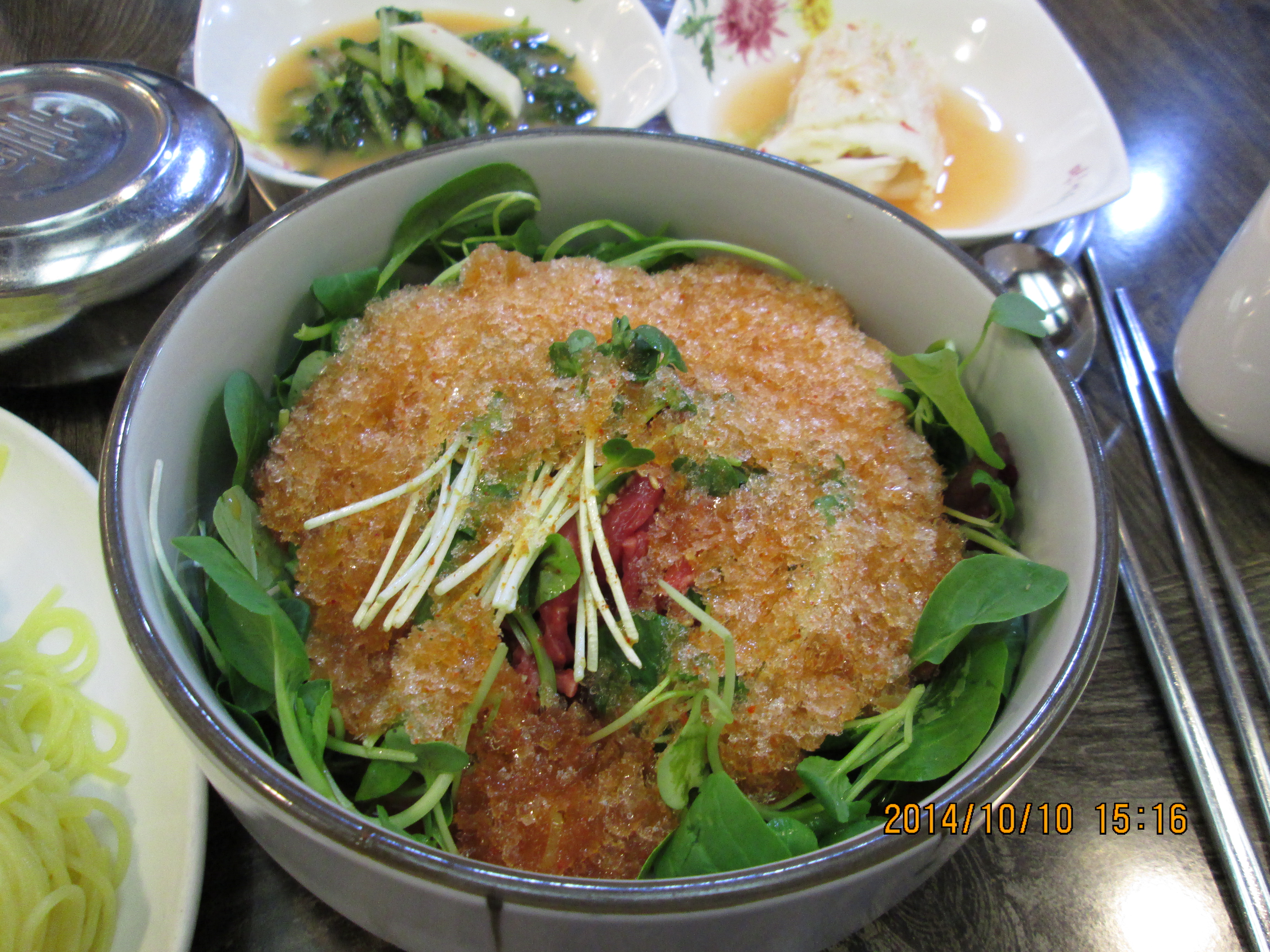 まずは、①味目!韓牛ユッケをいただきます♪ 写真登録日:2014-10-25