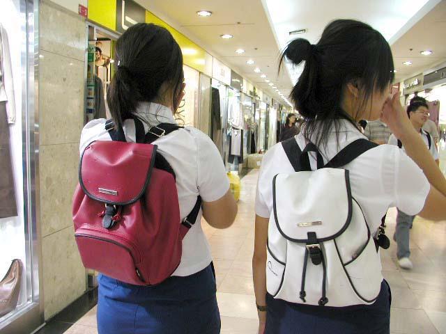 アンニョンハセヨ、プサンナビです。今日は、釜山の若者を代表して高校生諸君に登場していただきます。高校生の「みんながするから、私もする」精神は万国共通なのか、おもしろいぐらい同じようなスタイルをしているので何が流行っているのが一目で分かってしまいます。中には、理解ができない流行もありますが、でも、若者には若者だけが分かり合える何かがあるんです。では、ほほえましい高校生の姿を見ていきましょう。